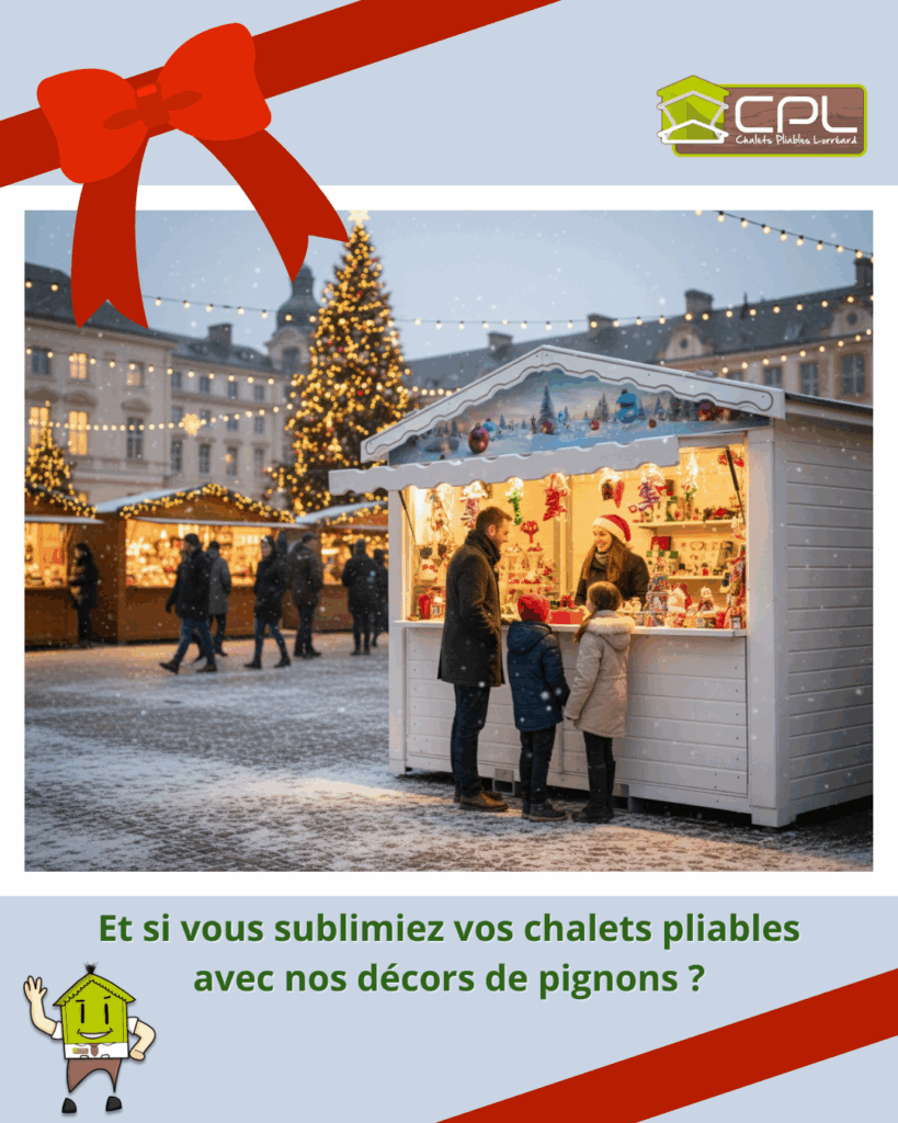 Ces décors apportent une touche chaleureuse, festive et professionnelle à vos stands – parfaits pour créer une ambiance magique sur les marchés de Noël.